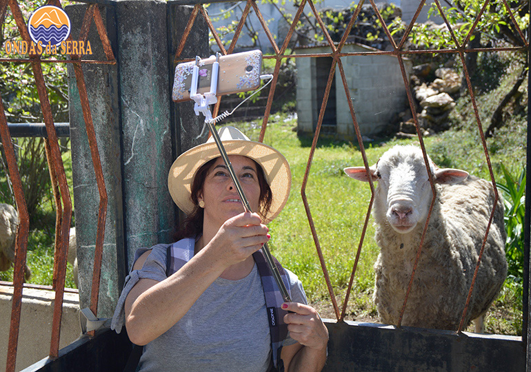 No lugar da Estrada, paramos a contemplar um soberbo sobreiro, que cumprimentamos e admiramos a sua grandeza, que nunca nos deixa indiferentes. Pelo caminho encontramos umas amistosas ovelhas num quintal a quem demos alguns ramos de videiras.