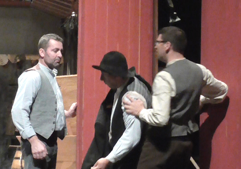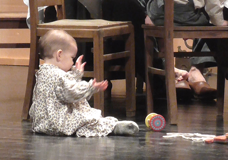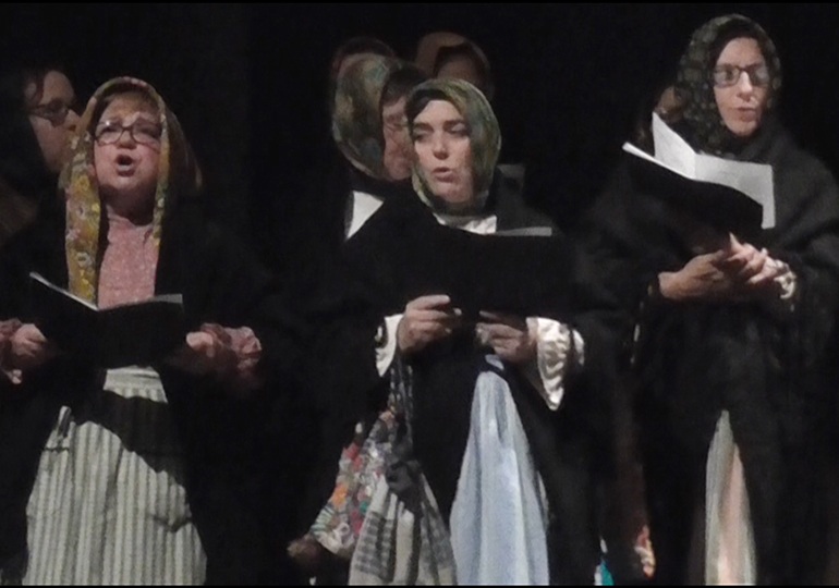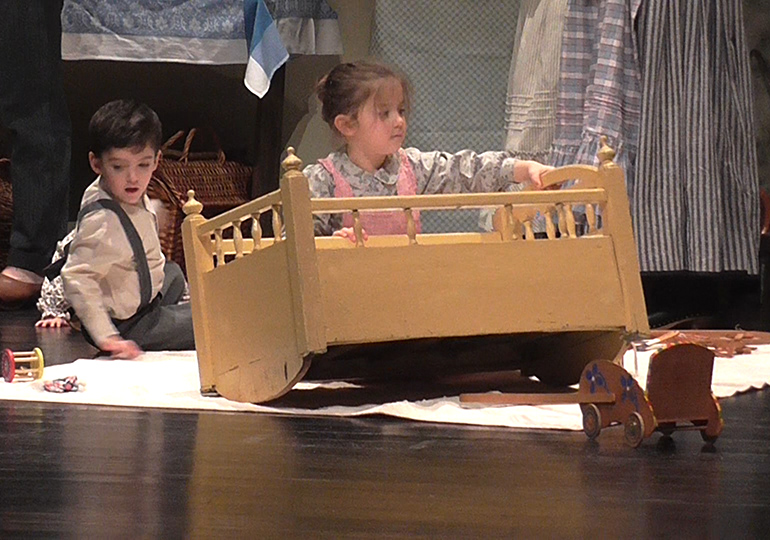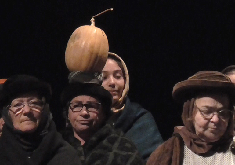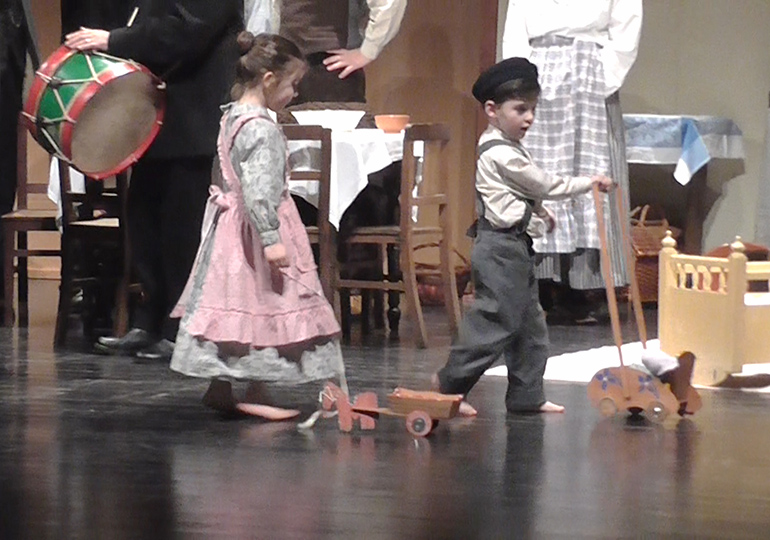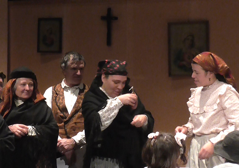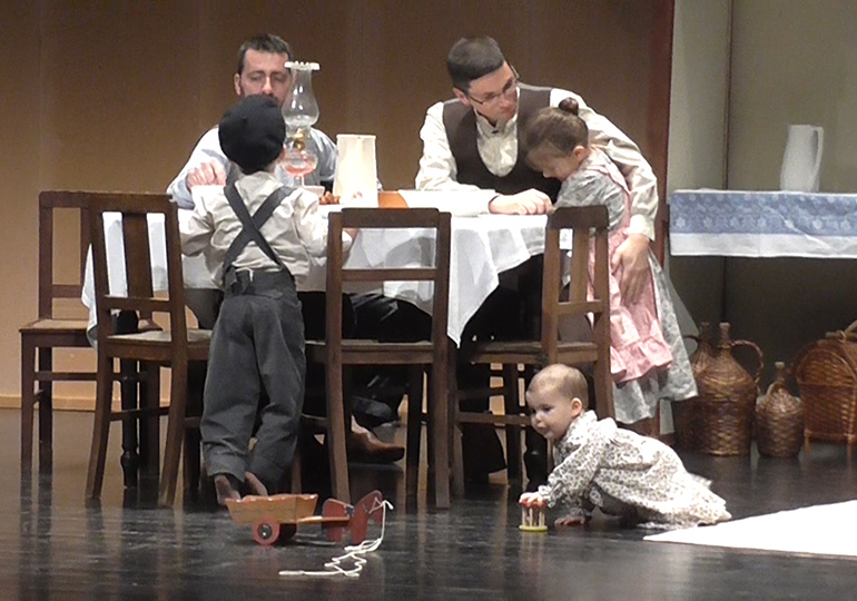 Uma família encontra-se reunida, com dois casais sentados à mesa, os filhos a brincar e duas avós sentadas à lareira, ao serão. O cenário desta recreação foi montado no palco do Cineteatro.