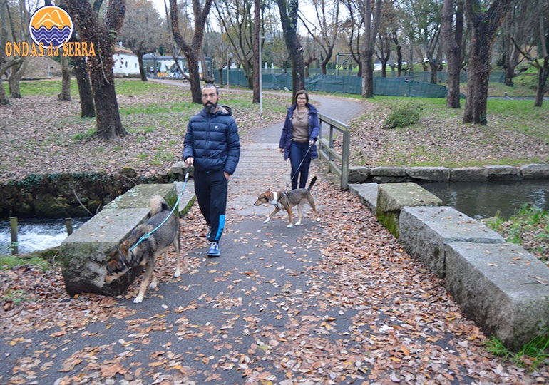 Ao chegarmos ao topo norte do parque, um casal com dois cães atravessava a pequena ponte metálica, algo nos despertou a curiosidade para os conhecer.