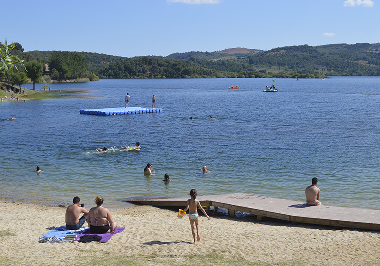 Estas tranquilas praias com as suas águas temperadas e clima ameno, propiciam dias para recordar. Ambas estão bem-dotadas de equipamentos de apoio, lugares de estacionamento e vias de acesso. Daqui partem alguns percursos pedestres, à volta da albufeira ou para Podence, Trilho do Caretos PR3. Podem ser feitos a caminhar ou de bicicleta, se pretender uma aventura diferente, vá de bicicleta até ao final da albufeira e visite a sede do concelho, via Vale da Porca.