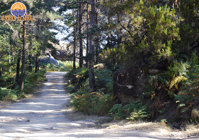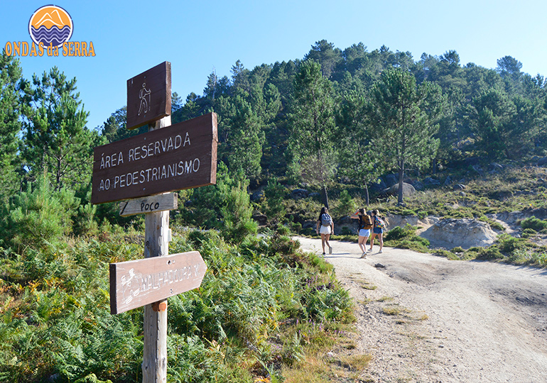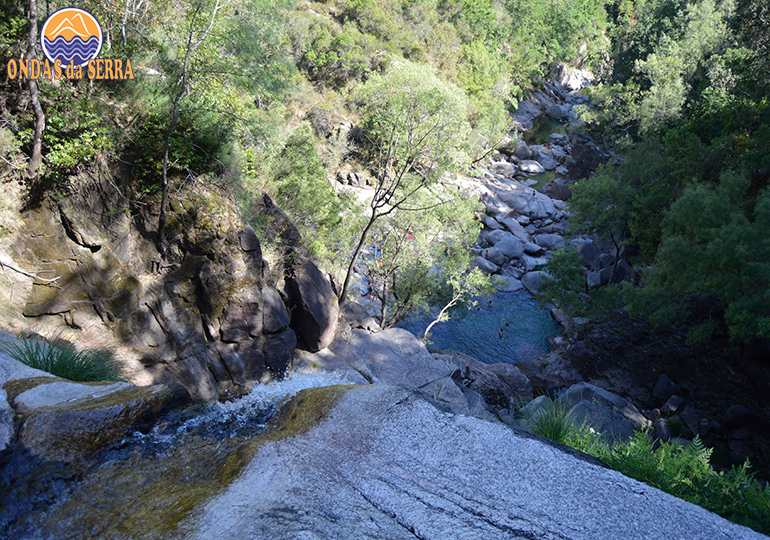 A dada altura irá ter que virar num caminho à direita, de um lado tem um bloco granítico onde alguém gravou uma seta, do lado direito tem a marca pintada do percurso pedestre PR14. O próximo passo é virar à esquerda num pequeno bosque onde existe uma pedra gravada com a inscrição “TRIBELA”. Depois o trilho desce e sobe uma encosta, passando pela Ponte das Servas sobre o Rio Conho. Quando terminar de subir a encosta irá encontrar do seu lado esquerdo um carreiro que o leva à cascata.