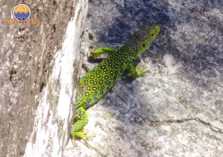 Desta vez tivemos uma surpresa agradável, estávamos nós a imitar um lagarto de sangue frio, já o sol se escondia por detrás das serras, absorvendo o calor dum maciço rochoso, quando um descarado lagarto das águas, aproximou-se sem medo, queria comida, teve que se contentar com um pedaço de batata frita que alguém ali tinha deixado, mas o bicho não gostou.