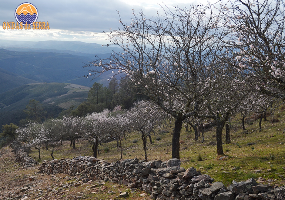 Pelos caminhos do PR14 - Rota das Amendoeiras fomos abraçados por floridas amendoeiras, oliveiras, videiras e sobreiros. Nós ficamos assoberbados, inebriados, toldados e enamorados pela beleza infindável dos mantos a perder de vista das amendoeiras em flor brancas e cor-de-rosa. A profusão das flores das amendoeiras inebriaram-nos a alma, toldaram-nos os sentidos e arremeteram para os poetas que em tempos cantaram versos por elas inspirados. A cada virar do caminho abraçávamos uma árvore e comíamos a ambrósia do seu doce néctar e odor das suas rosáceas flores.