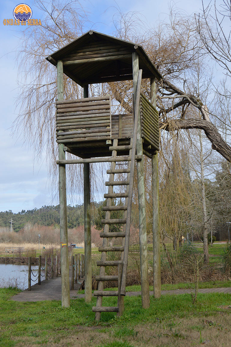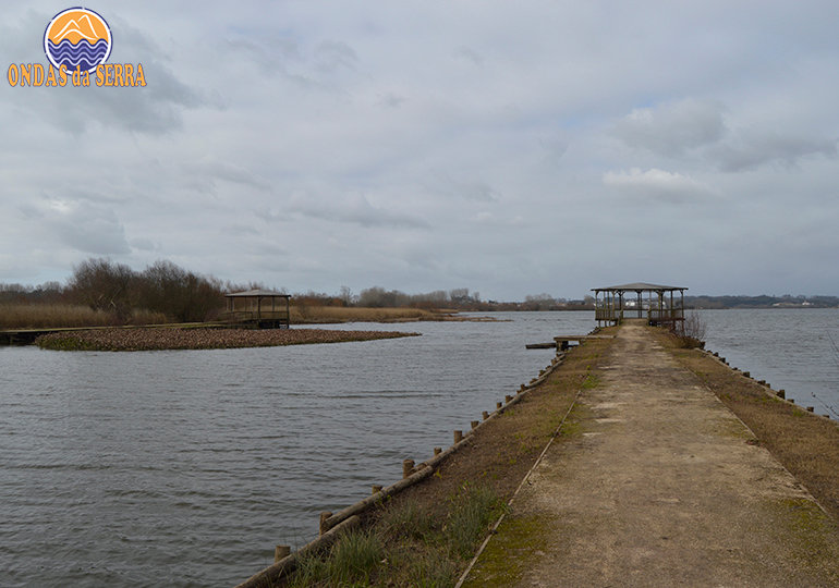 Seguimos o percurso paramos no parque de merendas da Pateira de Espinhel. Aqui destacamos dois observatórios que entram pela pateira dentro, construídos em madeira e que propiciam um local privilegiado para o céu ver refletida a sua formosa figura, ou simplesmente como uns jovens motociclistas darem por ali umas voltas. Se quiser subir para ver ainda melhor, ali existe uma torre de observação. A invasão de jacintos de água é um problema que afeta esta lagoa e os rios Águeda e Cértima. Aqui existe uma máquina para os limpar, mas que será porventura insuficiente para resolver o grave problema.