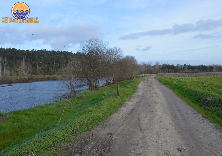 Caminha-se agora junto do rio, até um entroncamento de caminhos rurais bem definidos, por entre milheirais. O da esquerda encaminha-se para Óis e para a Pateira. Em frente segue para Requeixo (concelho de Aveiro) e para a sua ponte de arco quase por cima da confluência do Rio Cértima com o Águeda. Do referido entroncamento à ponte são 1300m. Continuando até à Pateria e ao longo da sua margem rapidamente se atinge o parque de lazer de Óis da Ribeira." 1