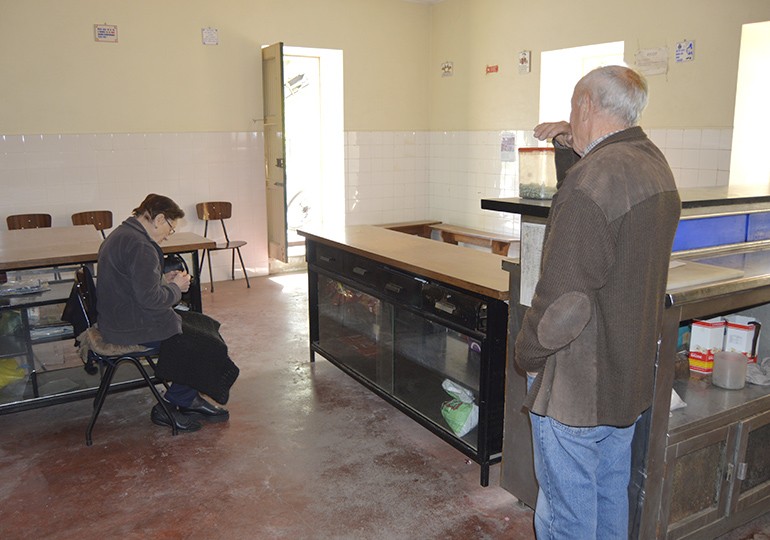 A Maria Macedo está debilitada fisicamente, sendo ajudada pelo António Rodrigues, que está aposentado e encontrou ali há cerca de dois anos uma forma de passar o tempo. É também um habitante da terra, tem 76 anos e trabalhou no exterior das minas do Pegão durante 40 anos, até ao seu encerramento. A mina naqueles tempos trabalhava sem parar, com três turnos diários. Nessa altura a tasca abria pelas cinco da madrugada e fechava perto da meia-noite, porque estavam sempre pessoas a passar.