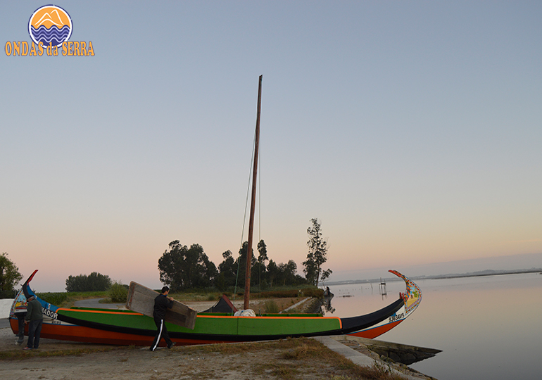 No sábado da regata da ria bem cedo, antes que o vento fizesse tormentos, fomos ver o BOTA-ABAIXO do moliceiro Amador na ria, para com as cores avivadas navegar até à Torreira para à tarde participar na regata.